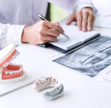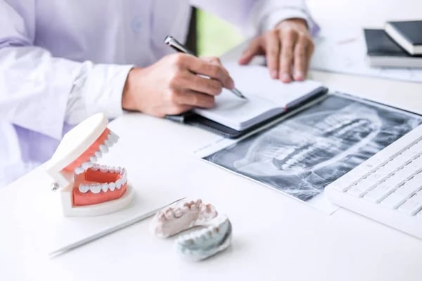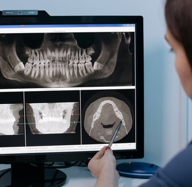 A análise detalhada de documentos e exames odontológicos, é uma etapa que antecede a perícia, na qual o perito ou assistente técnico examina os documentos, histórico clínico, exames e alegações das partes, verificando a coerência técnica, a existência de indícios de falha e a pertinência do nexo causal.